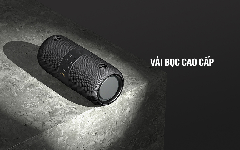 Toàn bộ thân loa Bluetooth được làm từ chất liệu nhựa ABS, dày và chắc chắn, phủ một lớp vải mịn trông cực kỳ đẹp mắt, bảo vệ tuyệt đối cho các bộ phận bên trong loa. Các đường cong trên loa được làm mịn, mượt mà không hề thô sơ, vừa cho cảm giác cầm nắm dễ dàng vừa giúp loa trông cao cấp hơn.