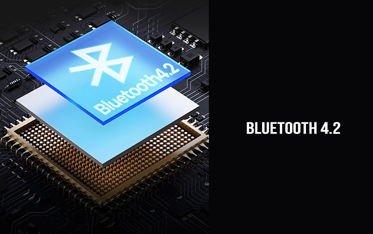 Việc sử dụng kết nối Bluetooth V4.2 thế hệ mới giúp kết nối nhanh chóng và đường truyền ổn định. công nghệ này không chỉ có khả năng chống nhiễu, độ trễ thấp mà còn tiêu thụ điện năng thấp, tương thích 99% thiết bị trong khoảng cách 10m.